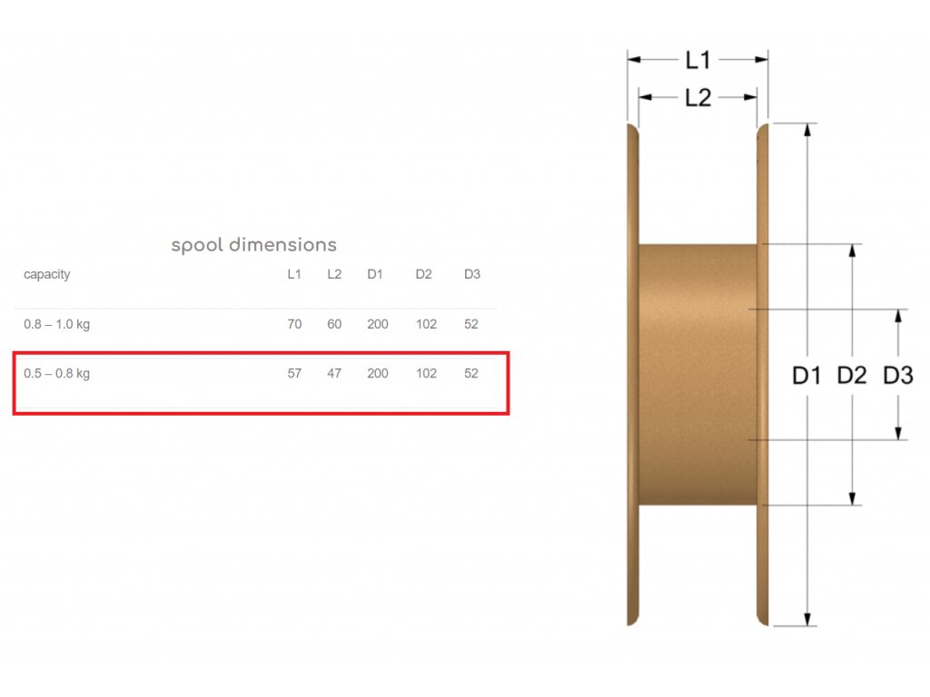 Rozměry a hmotnost cívek 0,8 kg: