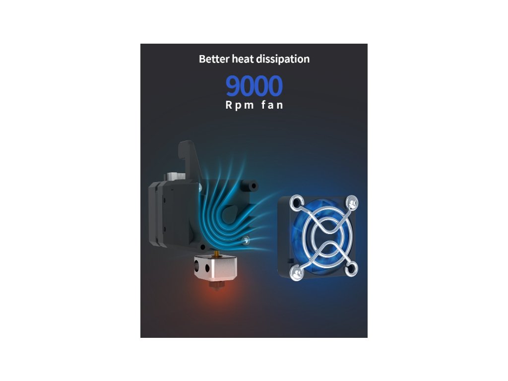 Struktura chladiče extruderu H2 je optimalizovaná tak, aby průtok vzduchu vedl pryč od trysky a tím pádem podporuje její rozložení tepla.