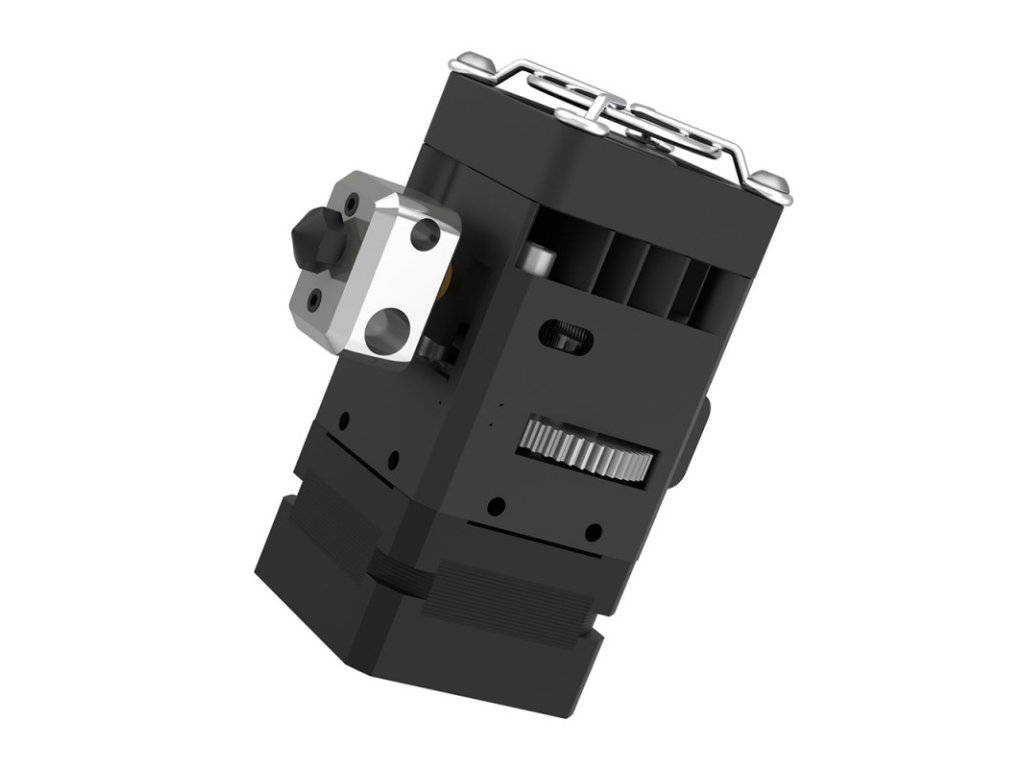 Tento extruder Váží pouhých 211 gramů a jeho hlavním plusem je takzvaný dual drive systém ozubených koleček, který zajišťuje plynulý a pevný průtok filamentu do trysky. Navíc díky vnitřnímu převodu 7:1 dokáže tlačit filament kroutícím momentem až 770mN.m.