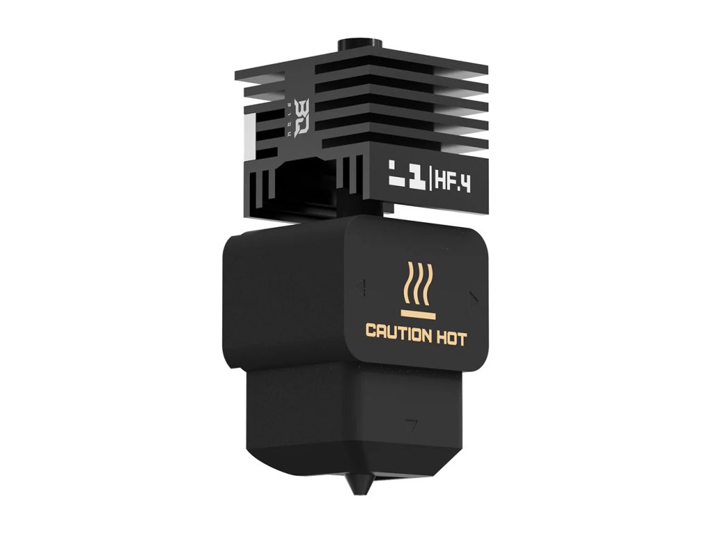 Černý hotend se vysokým průtokem (High Flow) a systémem pro rychlou výměnu trysek. Ideální upgrade pro snadnou údržbu a tisk s abrazivními materiály.