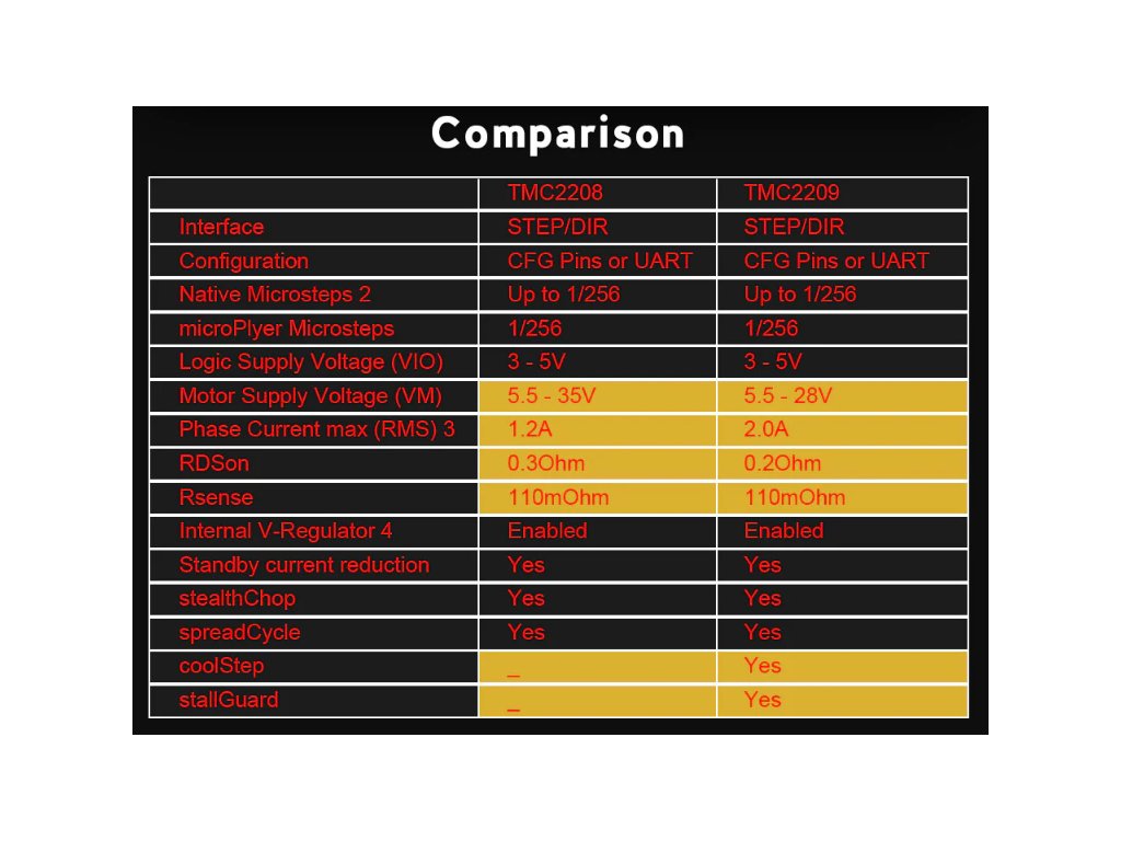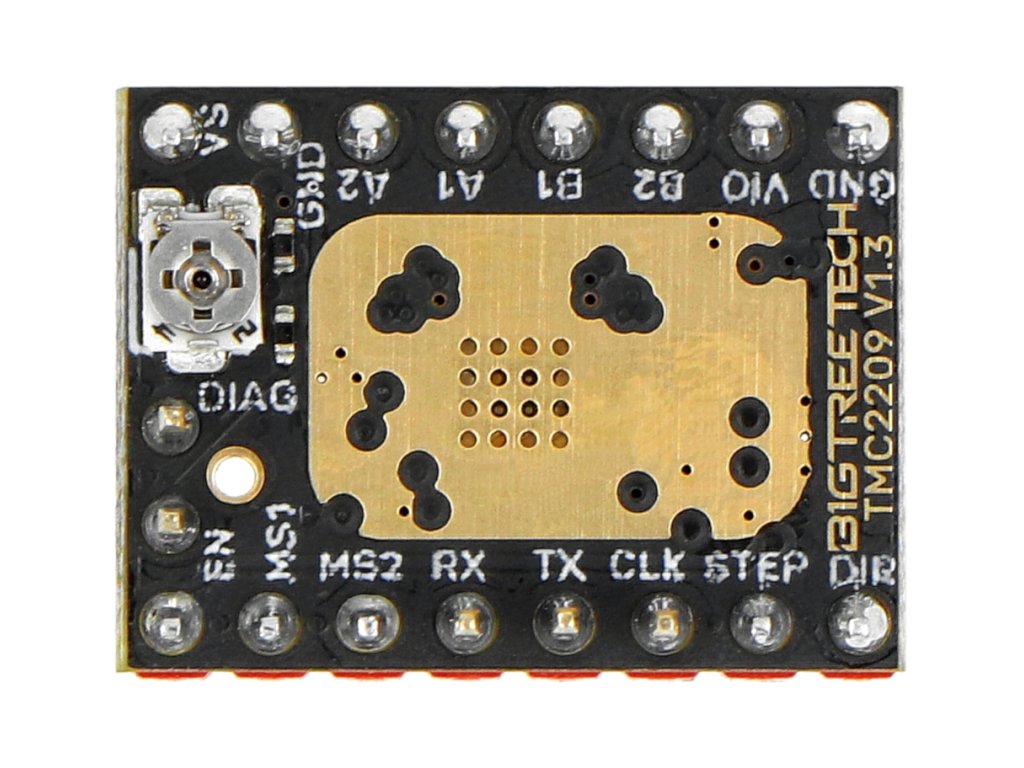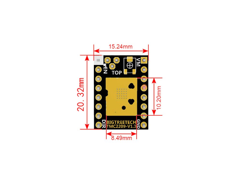 BIGTREETECH TMC2209 V1.3 je vysoce kvalitní ovladač krokového motoru určený pro 3D tiskárny. Je schopen poskytovat až 2,0A trvalého proudu a 2,8A špičkového proudu a má rozsah napětí 4,75V až 28V. Je také vybaven technologií StealthChop2 pro ultra tichý provoz. Ovladač vám umožňuje pracovat ve dvou režimech: step / dir nebo UART. Flexibilní interpolační jednotka microPlyer může provést až 256 mikrokroků. Bigtreetech TMC2209 V1.3 používá test uzamčení motoru Stallguard , který vám umožňuje ověřit poruchu této komponenty. Dynamické ovládání Coolstep ušetří až 75% elektrické energie. Ovladač se snadno instaluje a je dodáván s chladiči pro lepší chlazení. Je také navržen tak, aby byl kompatibilní se širokou škálou desek 3D tiskáren, včetně kombinací s ostatními verzemi driveru (V1.2 a V1.3).